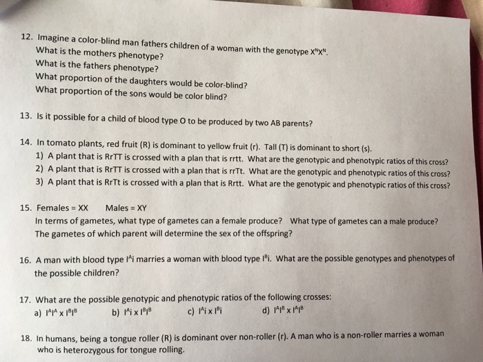 Solved 12 Imagine A Color Blind Man Fathers Children Of Chegg Com